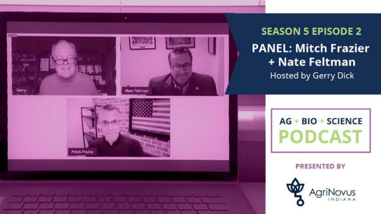 It’s a new year, new us! Welcome to season 5 of Ag+Bio+Science. On this week’s episode, our panel moderator, Gerry Dick with Inside INdiana Business, is joined by Mitch Frazier, CEO of AgriNovus, and Nate Feltman, owner and CEO of IBJ Media. They talk about what’s ahead for Indiana’s agbioscience sector, how we best tell our state’s story and some new changes to the podcast in 2022.